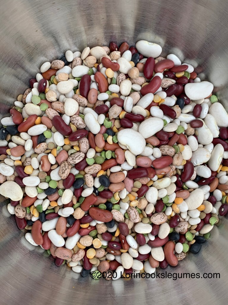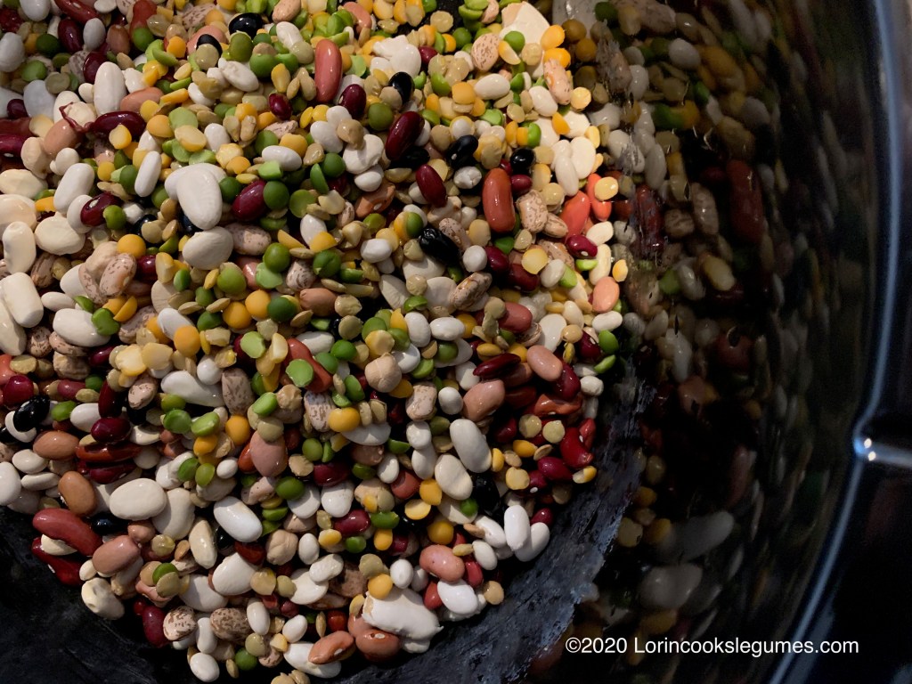 HamBeens™ 15 Bean Soup * comes in half a dozen different flavors (although I think I only found two flavors here in Duluth, MN). It comes as a bag with at least 15 different varieties of beans, and a flavor packet which you can add to your soup, or, like me, discard and use your own seasonings. The variety of beans is nicely balanced, so you don’t have a whole lot of one kind of bean and a few token beans of other varieties. It’s super colorful too.