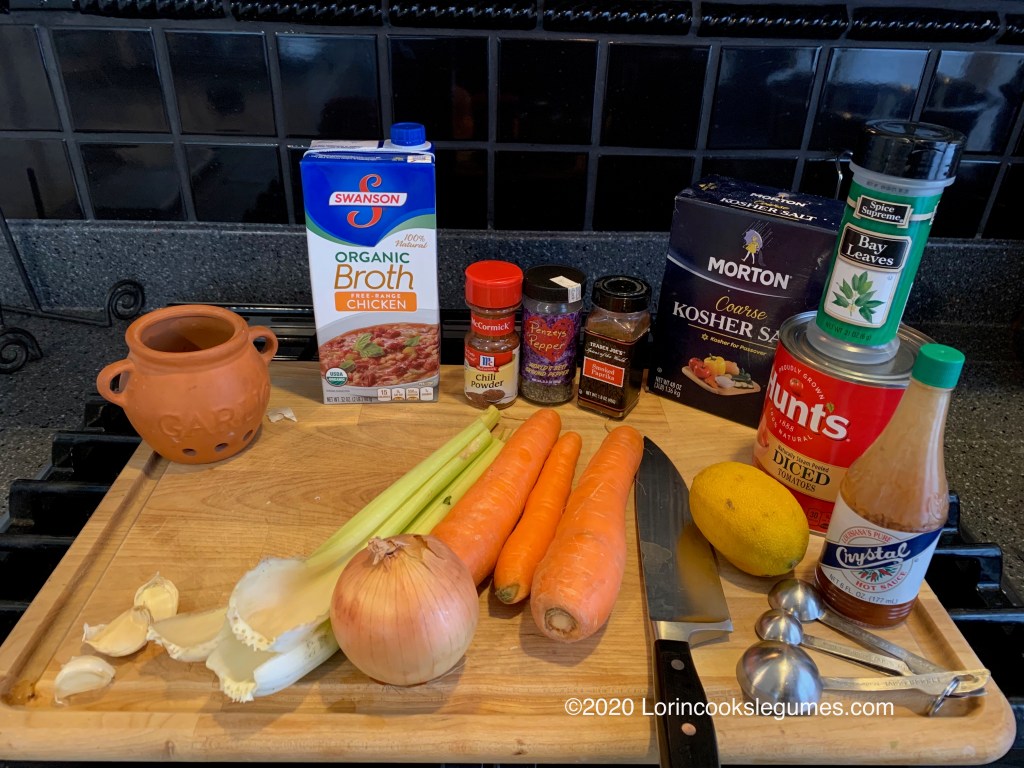 There are all kinds of advice for cooking beans out there. I’m pretty sure every single one of them has people who subscribe to a school of thought that the exact opposite is true. According to the recipes on the Hurst Company website you shouldn’t add any acid until the beans are soft, as it will affect the cooking of the beans. I’ve heard the same thing about salt. I’ve also cooked beans with tomatoes or salt added both at the beginning and end of the cooking process and can’t say I’ve noticed a difference. But for this recipe I add the tomato and lemon juice after the beans are soft.