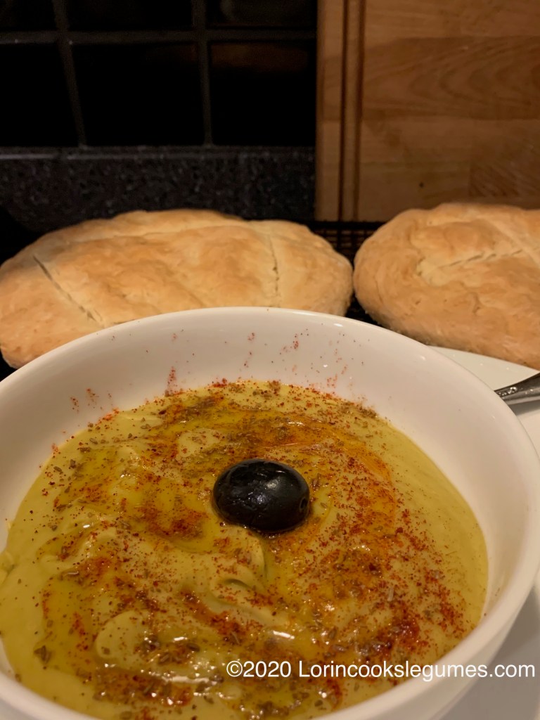 Edited 11/18/19: I made bissara again, with split peas this time. Still tasty. The color is a little greener compared to the fava beans, which make it about the color of hummus.