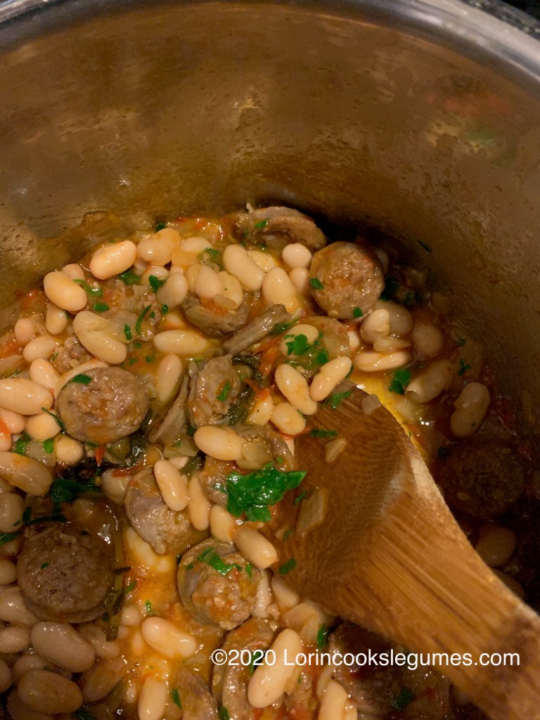 Add parsley and cooked beans. Simmer for another 10 minutes or so. Season to taste.
