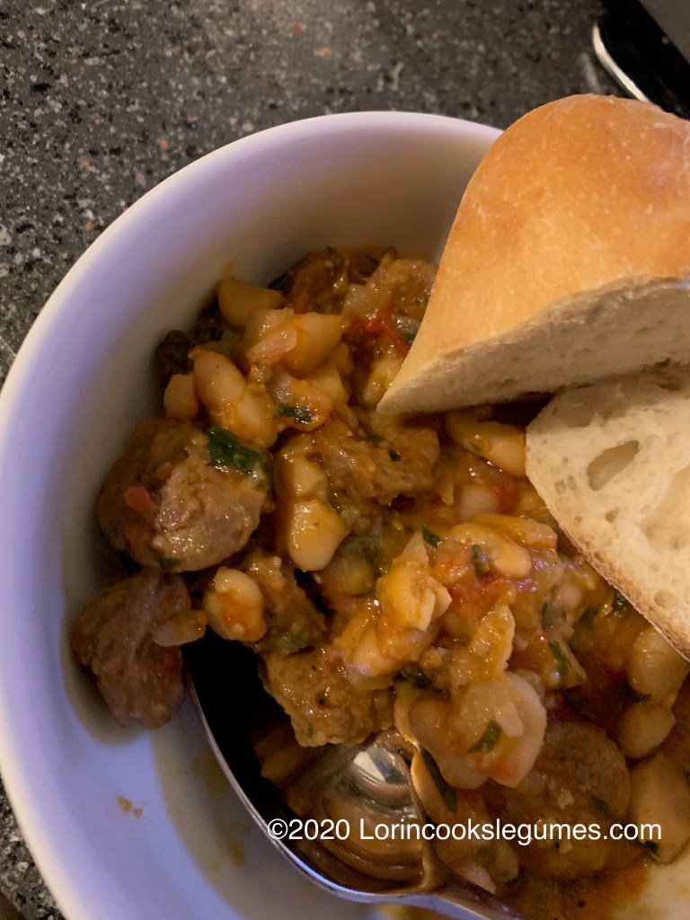 I tested the recipe with a single can of beans, but I believe the ammount of dry beans I call for come out to closer to three cans when cooked. Luckily I think there was enough flavor in there to easily spread to the larger ammound without sacrificing flavor. This is really a perfect example of the kind of dish an Italian grandmother would hope to be cooking when extra guests show up- you don’t necessarily have to have all the ingredients to stretch it to feed more people. A few extra beans, maybe an extra tomato… or even just extra water and salt if that’s all you have. (I’ll come back and test this with the dry beans at some point. If you try this recipe before then please let me know how it turns out.)