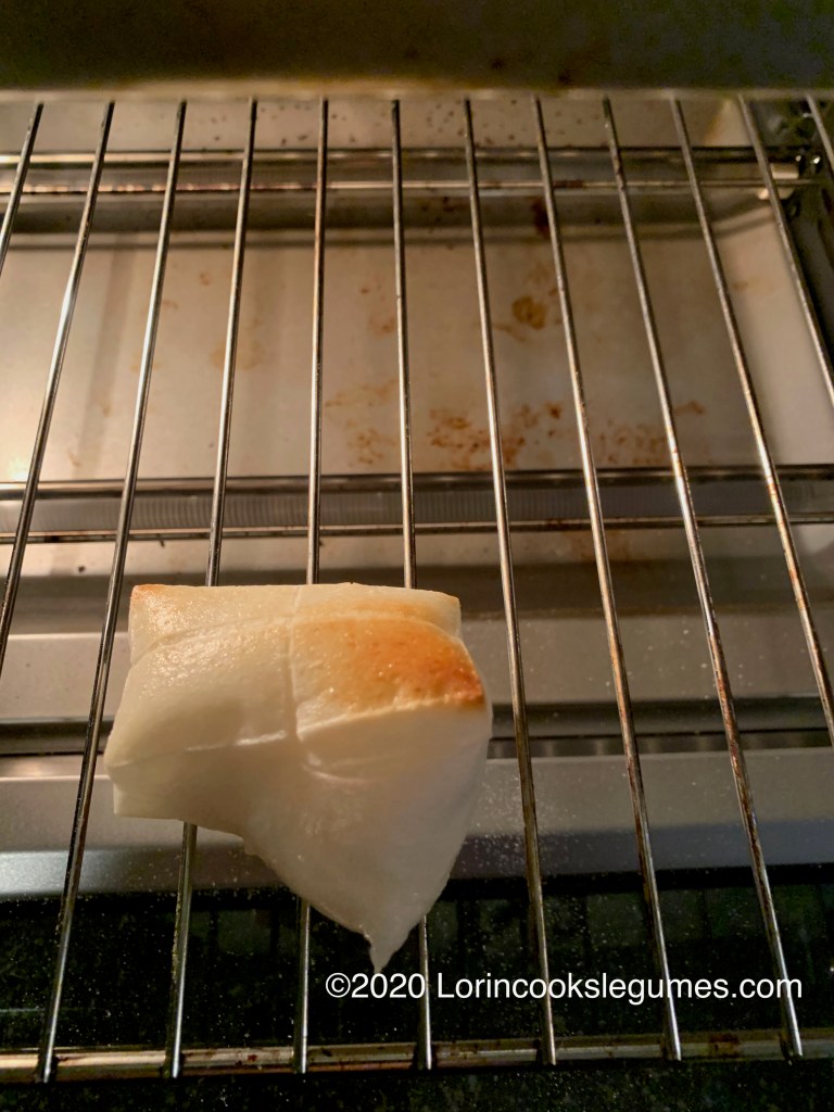 The rice dumplings I made with the hong dou tang last week have the same ingredients as mochi, but mochi is pounded or stirred as it cooks to develope the stringy, stretchy qualities of the starch. For this recipe I bough shelf stable kirimochi*, which I just pop into the toaster oven until it puffs up and browns. I tried using the bake setting, but get better results toasting it. Traditionally it would be grilled on the hibachi.