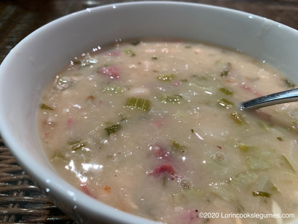I do know that Covid-19 has caused some shortages in grocery stores beyond toilet paper. The one I’ve noticed most is that the bean isle has been a little bare. The bag of navy beans I have at home was a few ounces short, but the store I went to was out, so I wound up using great northern beans, which are a tad larger. The senate recipes are specific about navy, but in general I find that most common varieties of white beans are pretty interchangeable.