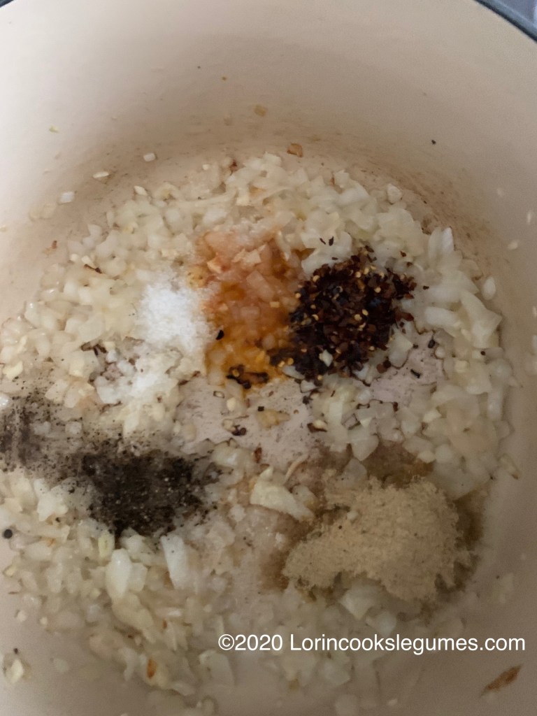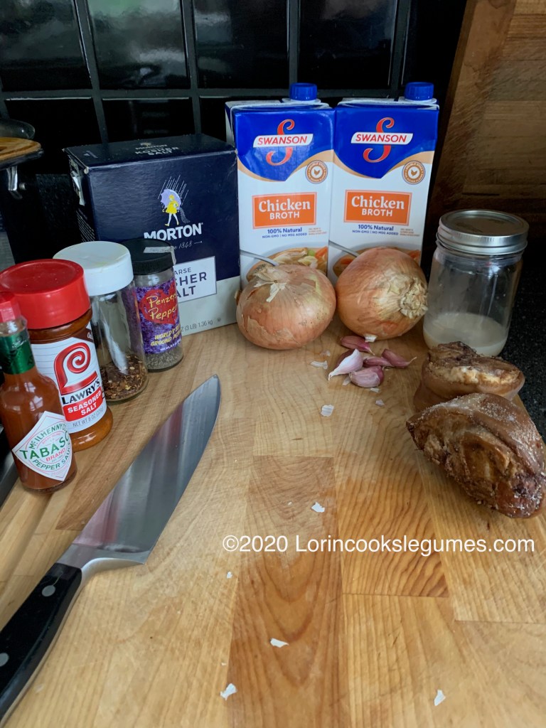 Add seasonings, hot sauce, ham hock and chicken broth. Bring to a boil, reduce heat and simmer, covered, for 1 ½- 2 hours.