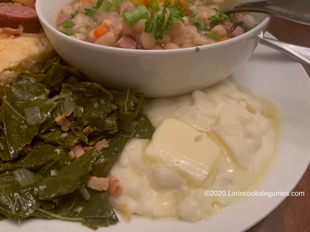 Mash the potatoes by themselves before adding other ingredients, then fold in the butter followed by the liquid dairy. The water in your milk/cream interacts with the starch in the potatoes and makes it sticky. Adding the butter first allows the fat to coat the starch first, resulting in silkier potatoes. Don’t add all your liquid dairy at once. The ammount of liquid potatoes will absorb varies by variety and how old they are, and it’s much easier to add more if your potatoes are too dry than it is to fix soupy potatoes. (I added all my milk/ cream mixture and the final result was a little on the soupy side for my taste. I also maybe undercooked my potatoes by about 2 minutes as they didn’t turn out as smooth as I would have liked, which may have also effected how much liquid they absorbed)