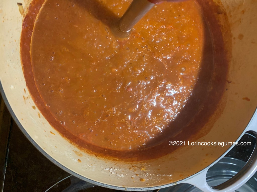 Add tomatoes, ketchup, tomato paste, stock, water, sugars, Worcestershire, vinegar, pepper and salt. Bring to a simmer and cook over low heat for 20 minutes or so. Transfer to a blender (or use an immersion blender) and puree until smooth. Return to pot.