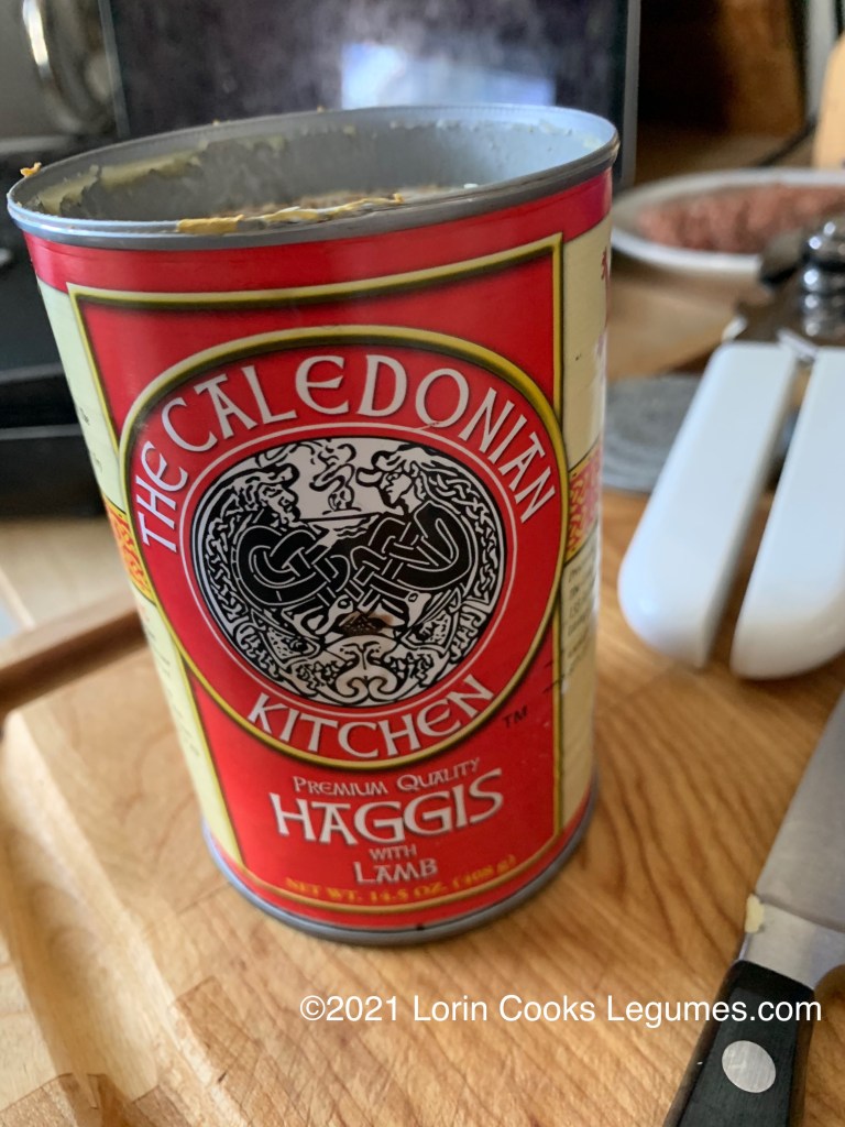 The final quintessentially Scottish ingredient I’ve included is none other than haggis. Most of my American readers probably only have a vague idea of what haggis is beyond that it’s “gross”. Haggis is a mixture of sheep “pluck” (aka offal- organs and innards) oatmeal and spices, usually stuffed into the sheep’s stomach and cooked. True Scottish haggis has been banned by the USDA because it traditionally contains the lungs, and there’s a chance that the contents of the sheep’s first stomach could back up into the lungs during slaughter. There are a couple brands that make canned haggis mixtures that don’t contain the lungs that are sold here. I purchased a can of Caledonian brand lamb haggis from The Scottish Grocer*. They also have a couple varieties of beef haggis, as well as “presentation” haggis’ already stuffed in a casing, and kits that include several cans and the casing to stuff your own. So what does haggis taste like? I would say it has a definite liver flavor, but not overwhelmingly so. Overall I found it pretty similar to black pudding.