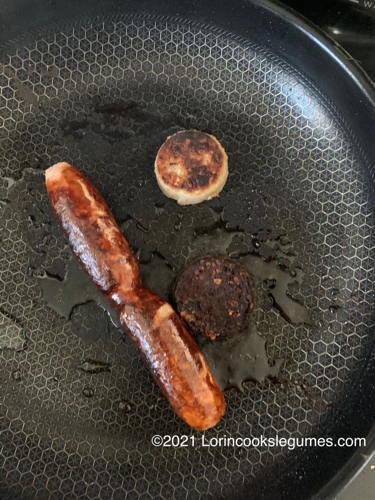 I didn’t include them in my base recipe, but as in Scotland, potatoes in some form seem to be accepted as a common piece of Irish breakfast, unlike the English breakfast that does not include them. I mean it is Ireland, the land of the Potato famine, so that’s not a surprise.