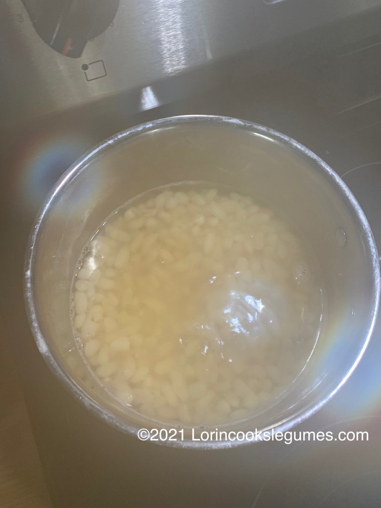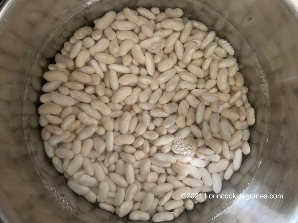 Rinse your beans and add cool water to cover by several inches. Leave to soak overnight.