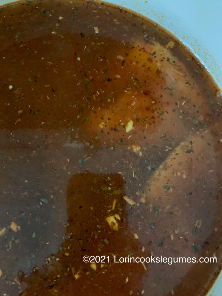 Before cooking this dish I marinated my pork in an adobo overnight. Now here in America, if you know what adobo is at all you probably think it’s the sauce that canned chipotle peppers come in. As best I can tell, it’s a preparation based on vinegar and garlic that has been adapted to local flavors wherever the Spanish colonized. In the Philippines adobo chicken or pork is a common dish, generally containing lots of garlic, vinegar and soy and fish sauces. And in Spain it seems to include paprika. I’m not sure how traditional the use of adobo in this dish is (it only really showed up in one recipe I looked at), but once I eliminated the Mexican recipes there wasn’t really any seasoning in the dish beyond salt and pepper so I decided to include it.