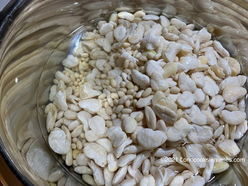 Pick over beans and cover with 3-4 inches of cool water. Leave to soak for at least 5 hours.