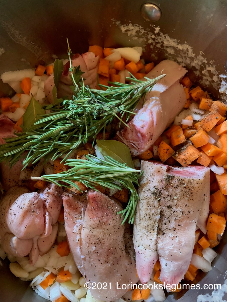 Frankly, there’s not a whole lot of difference in the recipes. Jersey seems to maybe use a slightly wider variety of beans. Some things I read seemed to imply that one island uses pork trotters while the other uses beef shin, but both options were fairly equally represented across recipes for both versions, with pork being the predominant option in both cases. I think the biggest difference is that the Guernsey recipes predominantly called for beef stock, while chicken won out on Jersey.