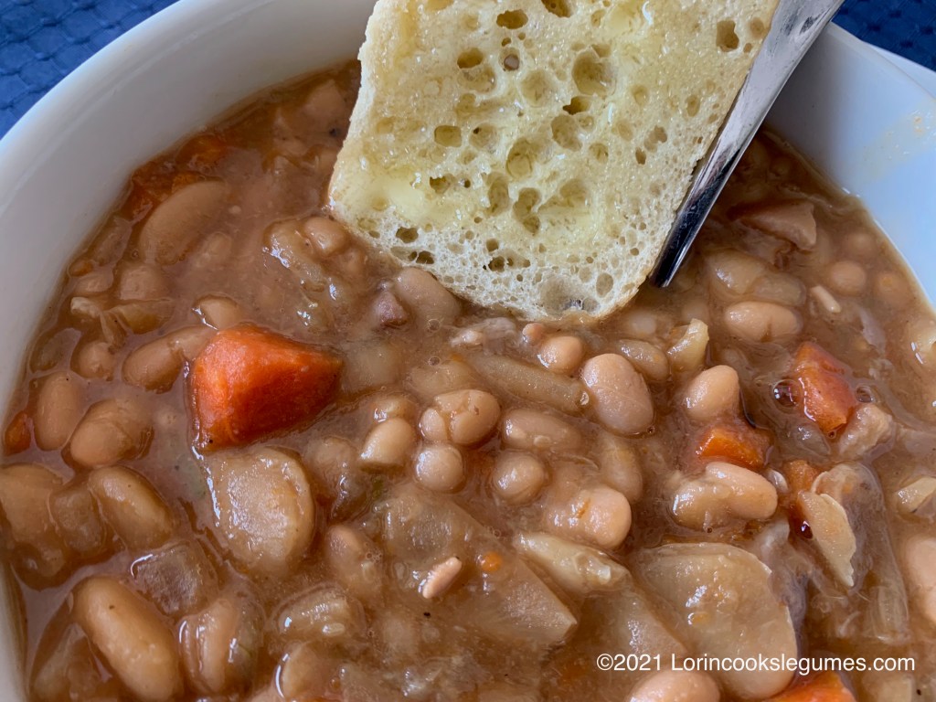 A few weeks ago I shared my Jersey bean crock recipe. Guernsey is, of course, another island in the English Channel, and shares the tradition of hearty bean soup/stews, cooked overnight in the local bakery’s oven. There is, of course, much friendly local rivalry about who stole the recipe from who, and which island’s version is better. Of course, even within an island every family has their own recipe so it turns out a little different in every home.