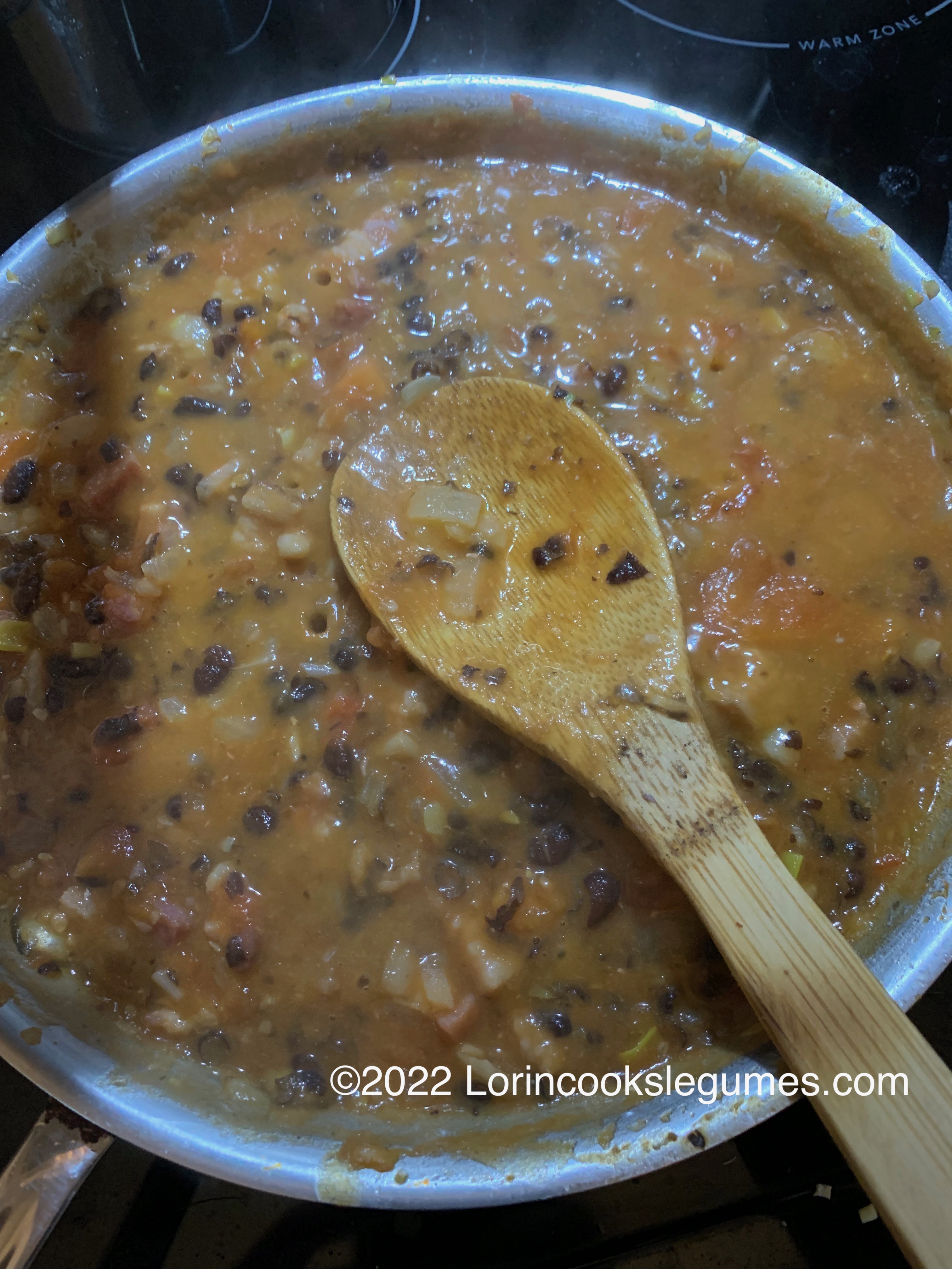 Continue to simmer, uncovered, until gravy thickens to desired consistency. Season with black pepper and salt to taste. (Be careful; there’s already a lot of salt from the carne seca and pork. I did not need to add any extra).