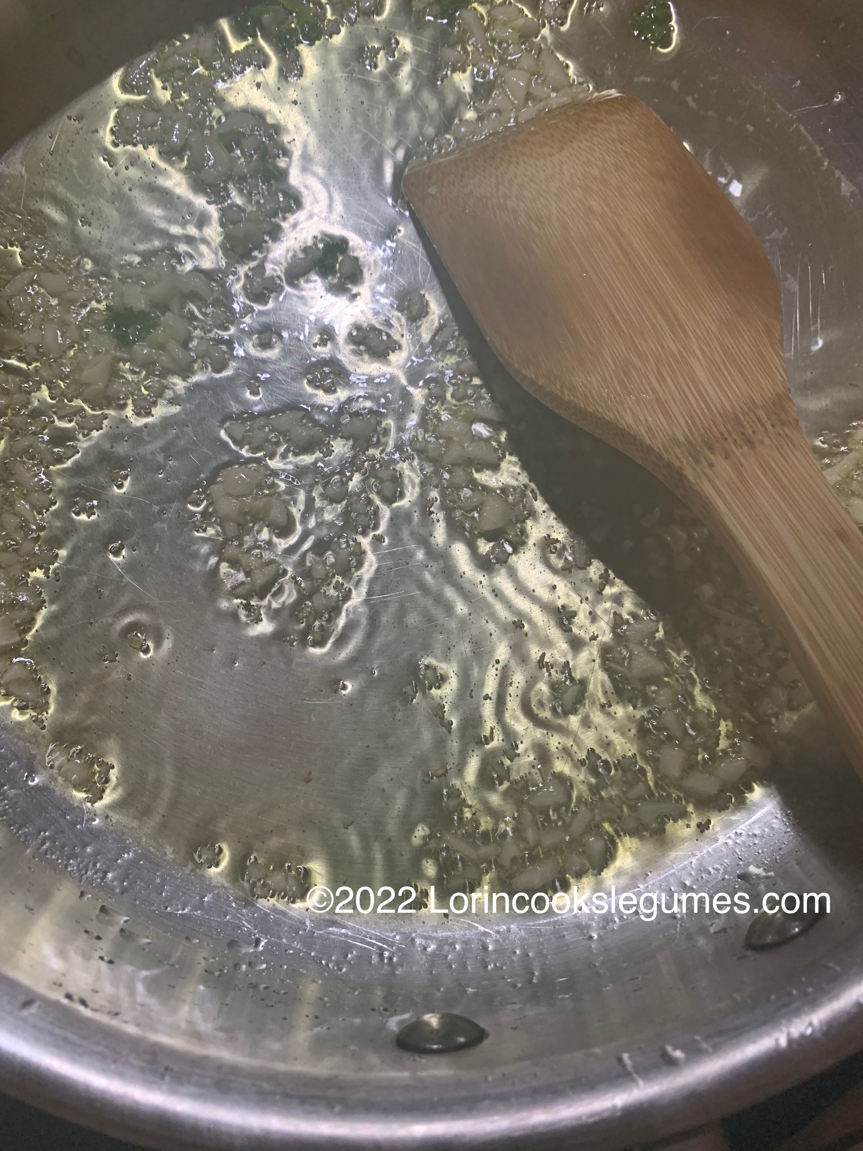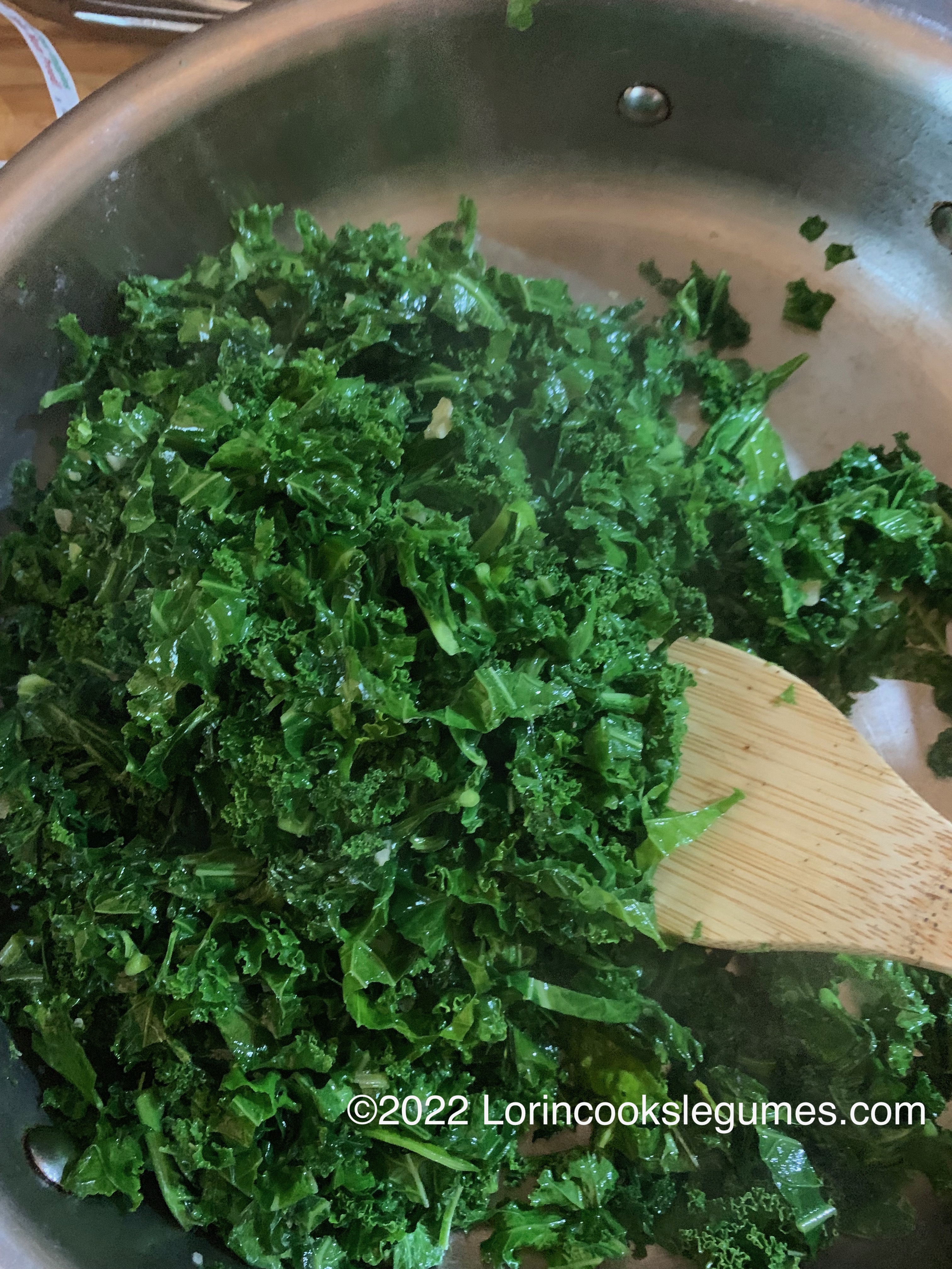 Meanwhile, heat a little olive oil in a sauté pan and add 4 cloves of garlic. Sauté until lightly browned, then add kale and sauté for a few minutes.