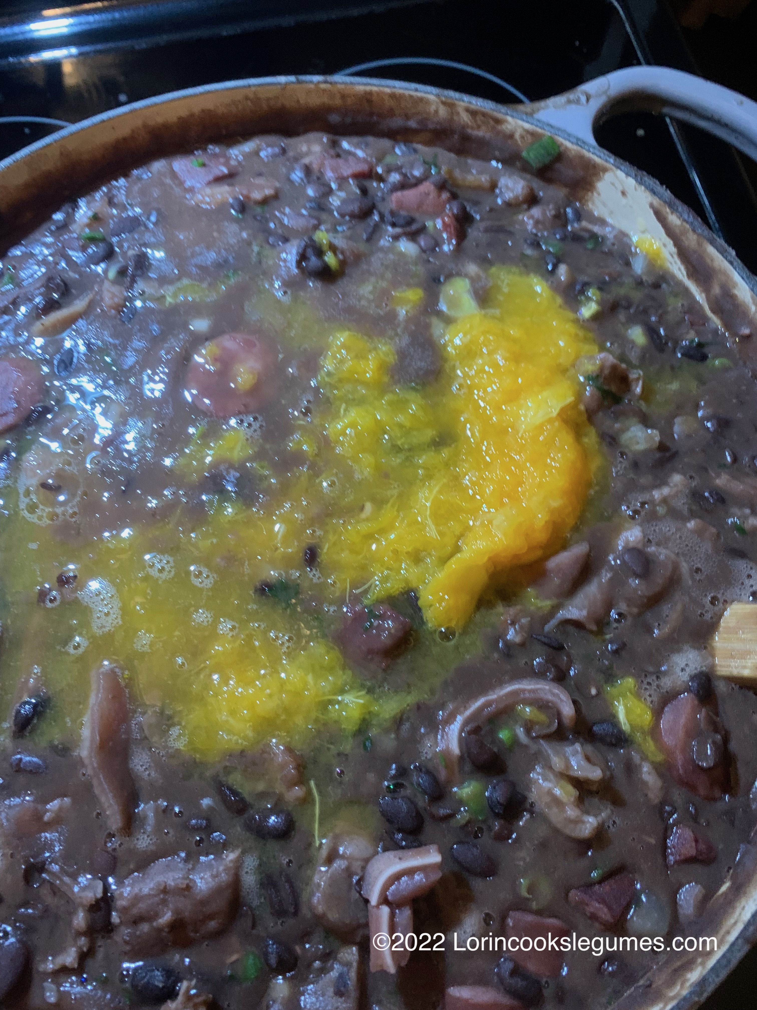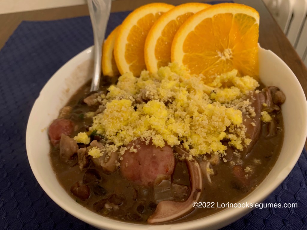 Of course in Brazil you’ll almost always find feijoada served with rice, farofa, couvre (sautéed collards or kale), and orange slices. I was feeling lazy again and skipped the rice and greens this time. I’m sure it would help complete the nutrition profile of the meal though.