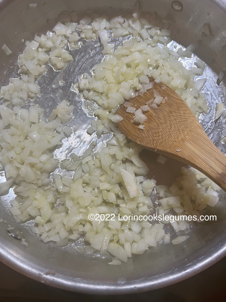 Heat oil in a skillet or large sauce pan with a tight fitting lid. Add the onion, garlic and salt and sauté over medium heat for 5-10 minutes, until onion is translucent.