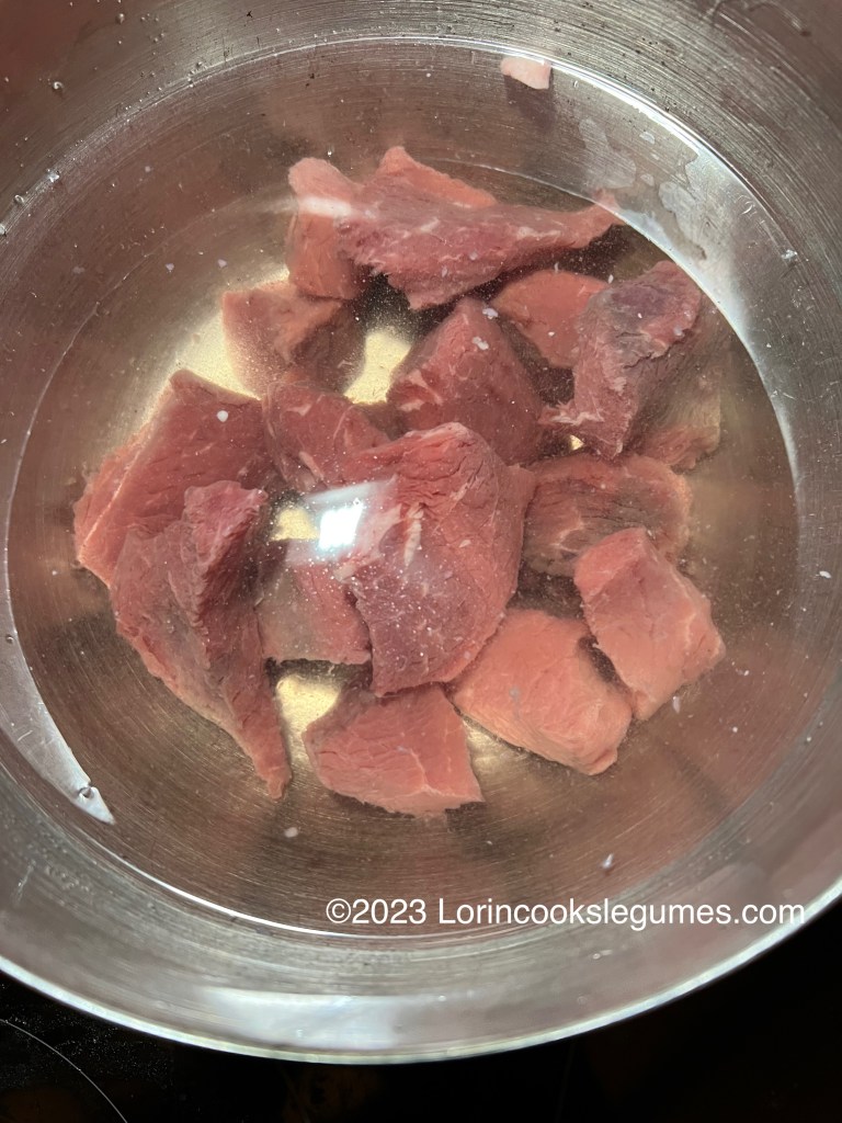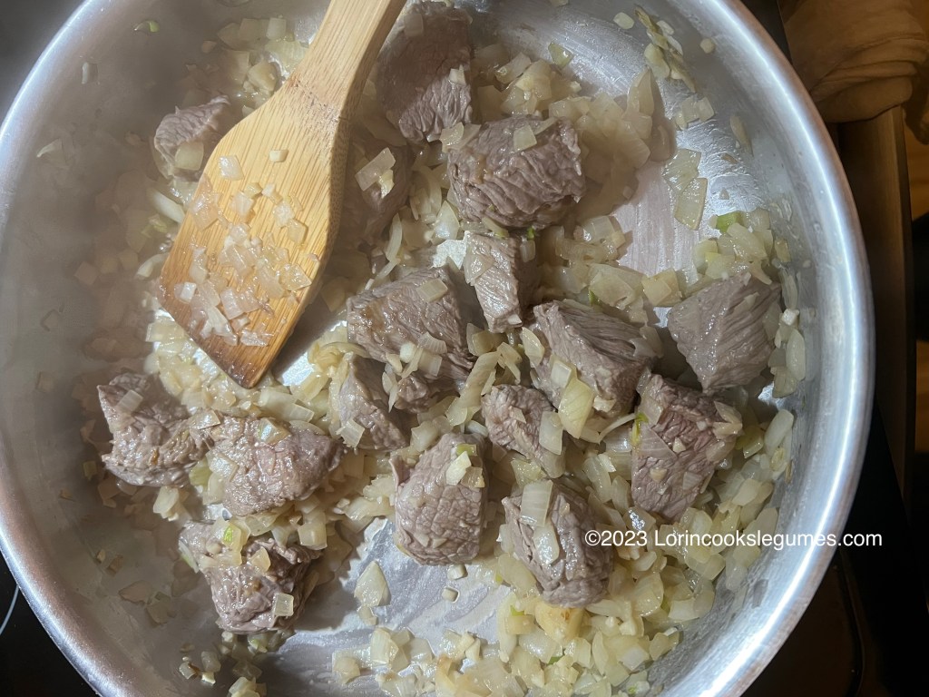 There were a couple of interesting variations that came up with this recipe. First off, recipes that called specifically for chicken had about as many entries on my list as those calling for “meat”, which could be beef or lamb (or I suppose camel would also be an option in Saudi Arabia). I used beef this time.