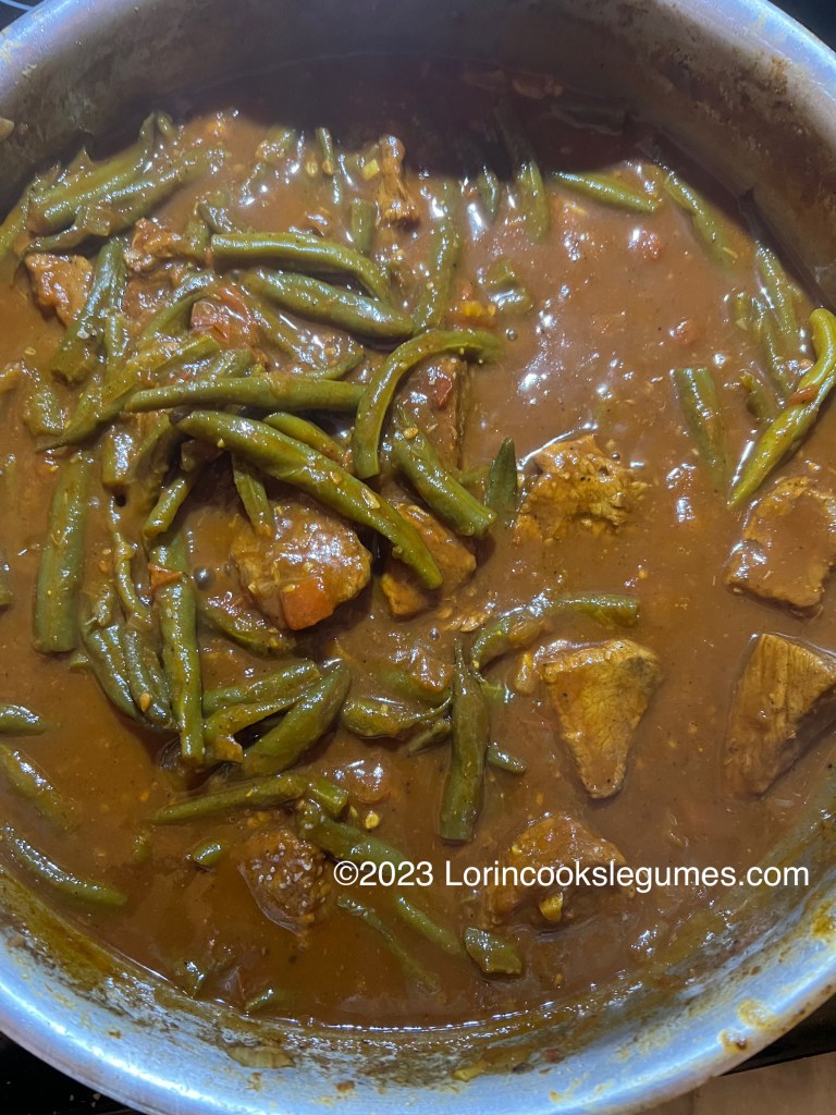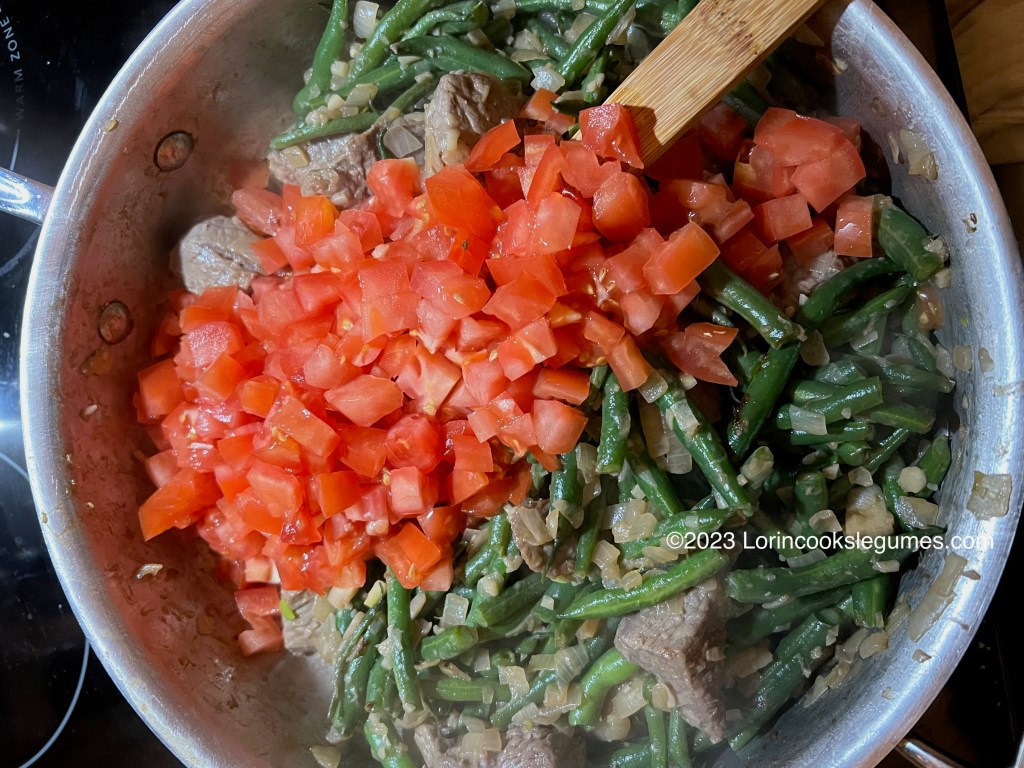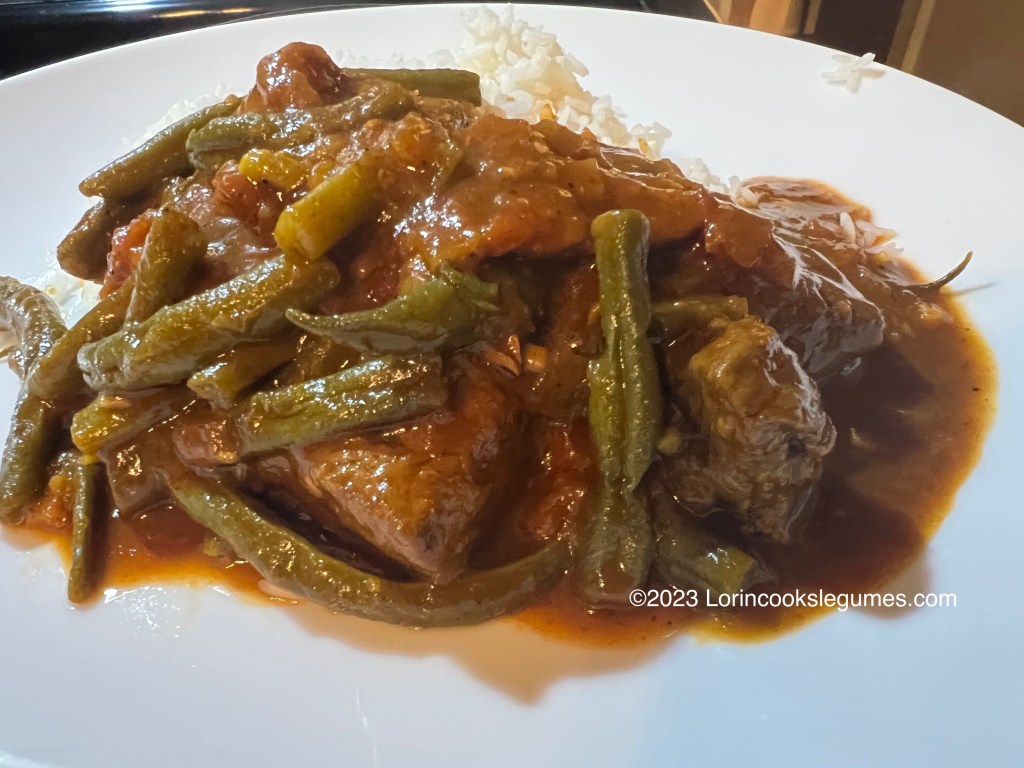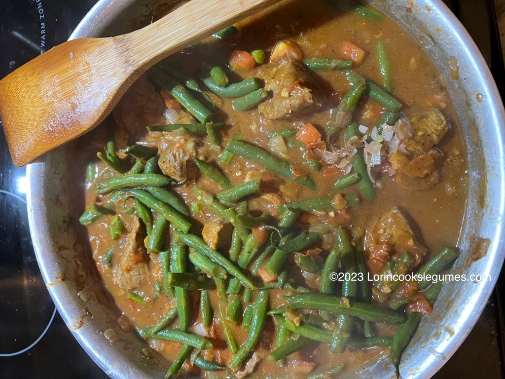 One thing I’ve forgotten to mention over the last several posts about green bean based fassoulia is that you can use frozen beans if you wish. I did use fresh again this time, but with the long cooking time your beans are going to be super soft anyway, so it won’t really make a difference. In retrospect, I still have several pounds of home grown green beans in my freezer from two summers ago that i should have used instead of paying for out of season fresh ones. If I wind up with any more green bean based fasoulia recipes before I end this little journey I’ll have to keep that in mind.
