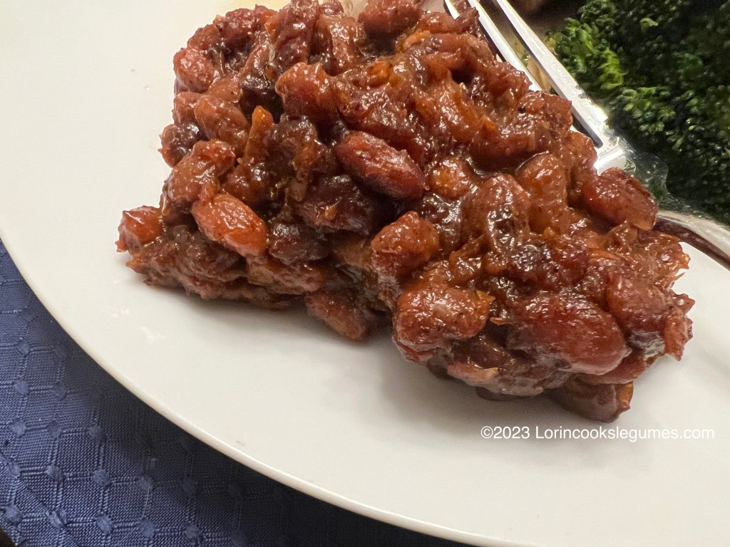 Although I don’t know that it comes close to replicating any one variety of Bush’s baked beans, it is quite delicious, even though I over baked it by sticking to the times I put in my recipe instead of using my judgement to decide when the sauce had reduced enough. Lesson learned, and the recipe I share with you will be modified to reflect that.