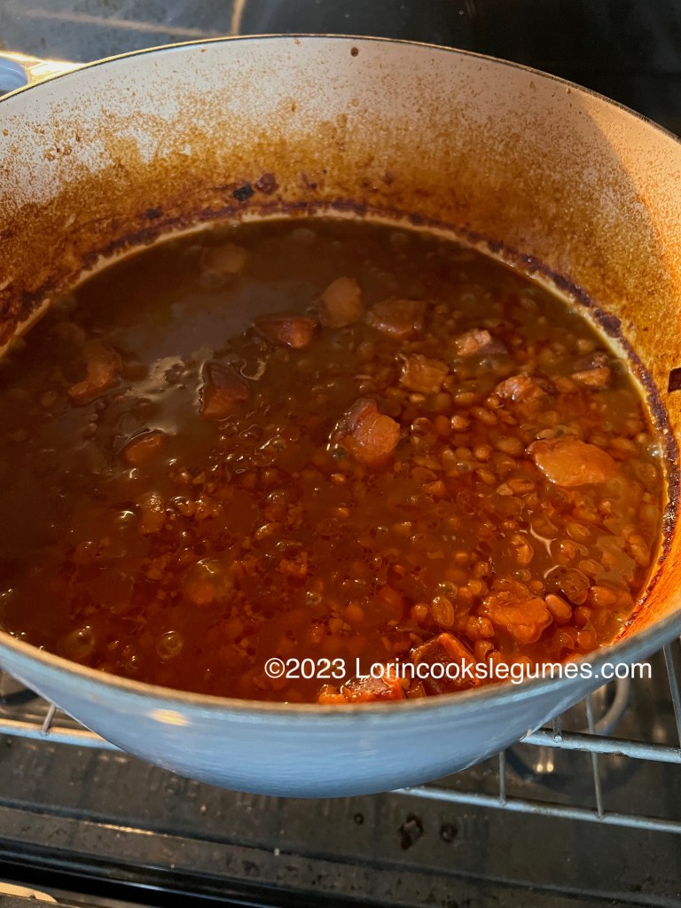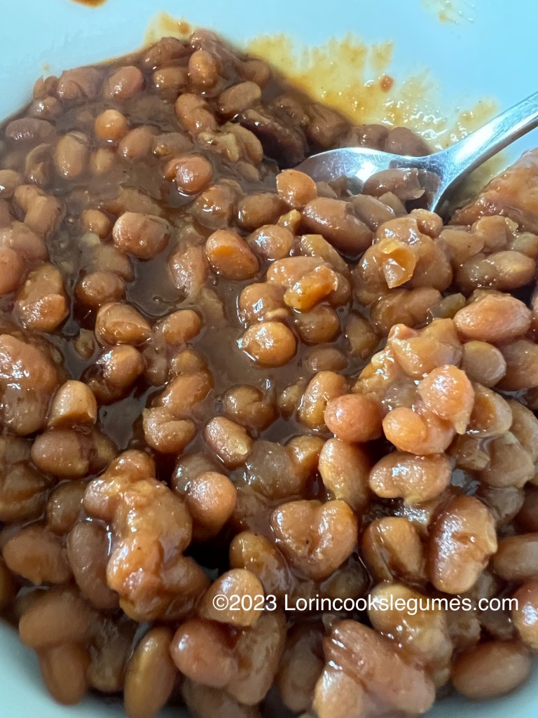 Once the beans are soft, remove the lid, turn the oven up to 375 F, and bake for another 35-40 minutes, until the liquid is reduced and the top is browned.