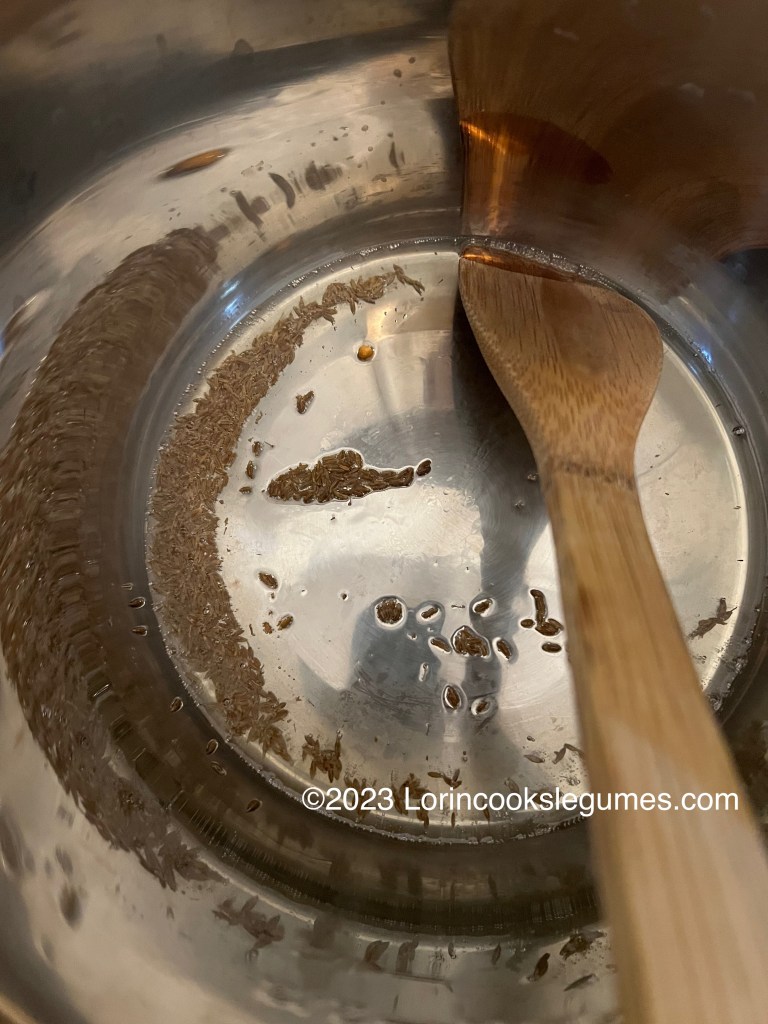 Heat your InstaPot on sauté setting. Add ghee or oil. When hot, add cumin seeds (and mustard seed, if using) and fry until they splutter, about 30 seconds.