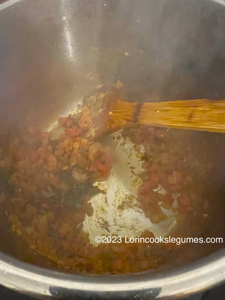 Add the rinsed dal and water and stir well, scraping up any bits stuck to the bottom. Hit cancel on the InstaPot control panel.