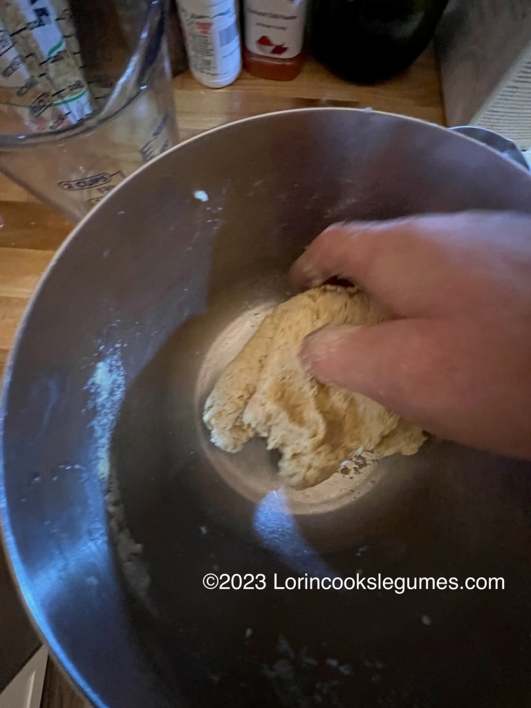 Once the dough comes together you want to knead it for about 5 minutes, until it is smooth and pliable. Then it needs to rest for at least 30 minutes. It’s not a leavened dough, so it’s going to look exactly the same at the end, but inside the gluten will have relaxed, making it much easier to roll out. (This is a useful trick to remember for any dough you want to roll or stretch thin, especially if it has been kneaded.)