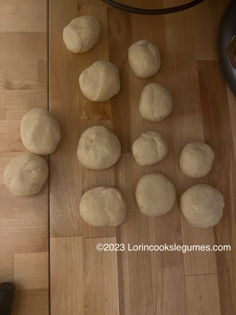 Briefly knead the dough again, then divide it into 12 even portions. Roll into smooth balls and cover with a damp towel.