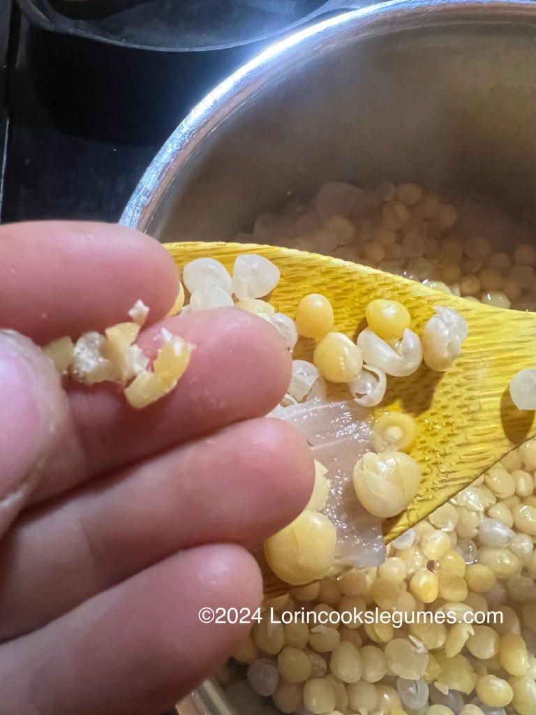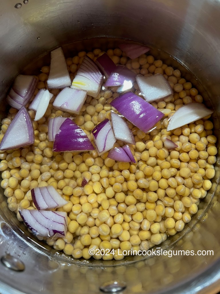 Pick over peas and remove any bad peas or foreign objects. Rinse well and cover with several inches of cool water. Leave to soak for 6-8 hours or overnight.