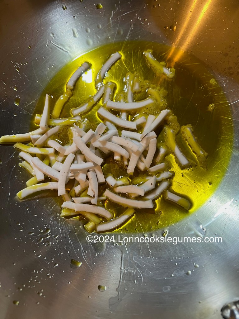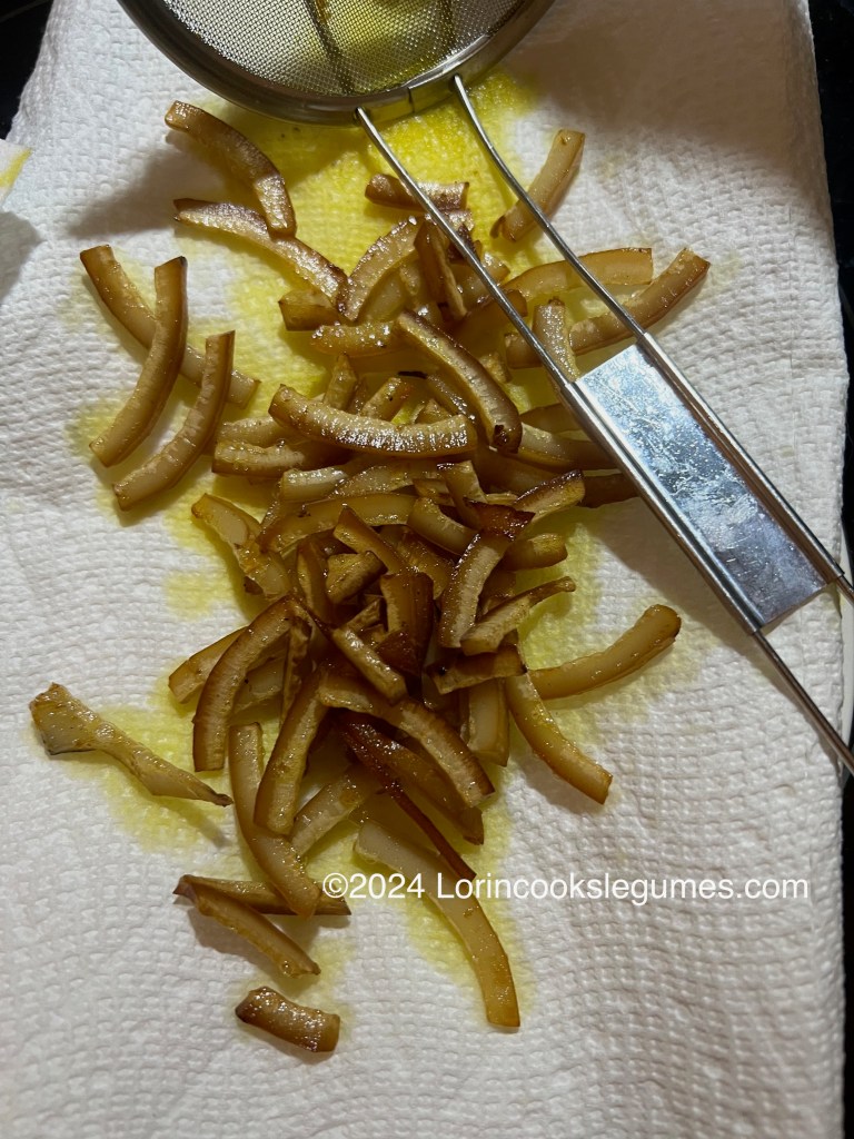 Add the potatoes to the oil and fry until golden brown. Remove from oil and drain. Set aside.