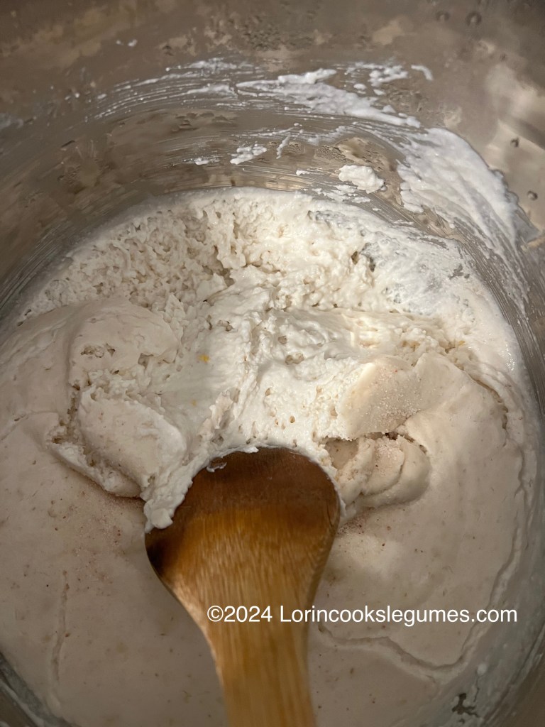 The fully fermented batter should have doubled in volume (make sure you use a big enough bowl to accommodate this), have lots of bubbles on top, and smell a little sour, or I actually thought it smelled vaguely “cheesy”, in a pleasant way. A good way to tell that fermentation has started is that smell; the raw bean batter has a smell that I found slightly unpleasant, but once it started to ferment, that changed. Most recipes said the batter would be a little thinner after fermentation, but I found that it actually thickened, with a slight crust forming on top. I’m not sure how one would prevent that- any batter that’s left out for hours tends to dry out on top, and the yeast needs to breathe, so it can’t be tightly covered with plastic or something. I fermented mine directly in the Instant Pot stainless liner, but most recipes called for putting another bowl inside the pot. I don’t know if having an extra layer of bowl between the batter and the heat source would really make any difference here though. I suppose it’s possible that I should have let it ferment longer- perhaps it hadn’t truly doubled in volume yet? That said, you do want to avoid over-fermenting as it will make the batter too sour.