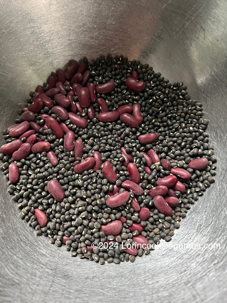 The recipe starts with whole, skin on, urad dal (aka black gram), and red kidney beans (rajma in Hindi). There’s some debate online as to whether or not kidney beans belong in this dish. Some people say that true dal makhani is made with only urad dal, and adding rajma makes it a different dish, but most of the recipes I saw use both of them.