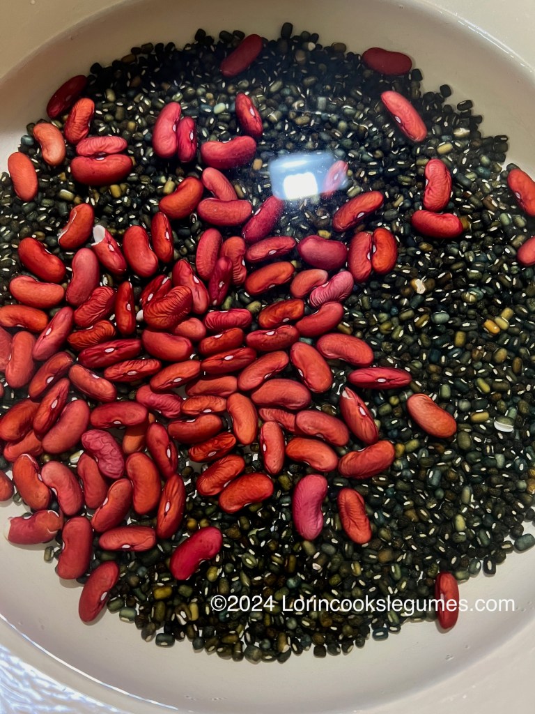 Pick over urad dal and kidney beans, removing bad beans or foreign objects. Wash well in several changes of water, scrubbing beans between your hands, until the water runs clear. Cover with cool water and leave to soak overnight or for at least 6 hours.