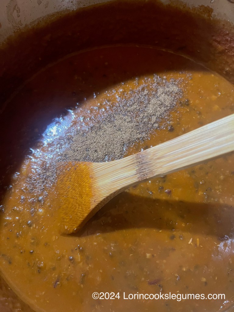 Once the beans are soft, sauté some onions, tomato, and spices, add them to the beans and continue to simmer. Some recipes only cook for 10-20 minutes at this point, but most agreed that you want to continue simmering for quite a bit longer- some suggested as long as 90 minutes, and some restaurants will even leave it to simmer overnight. The average of all the recipes I looked at came out to 35 minutes, so that’s what I did, but if you have time to keep it simmering longer, by all means, do so! Just stir frequently and add boiling water every once in a while if it seems to be getting too thick.