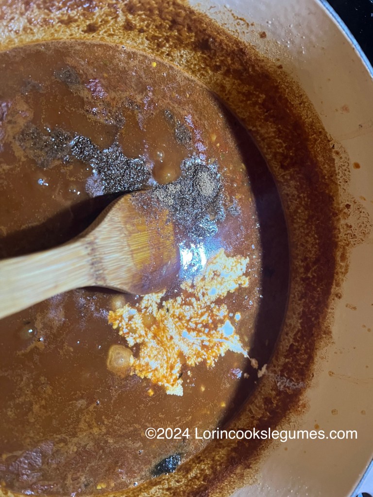 Add the coriander, turmeric, salt, cumin, and red chili powder one at a time, mixing well after each addition. Continue to cook for about 5-10 minutes, until the masala thickens and the oil begins to separate from the mixture.