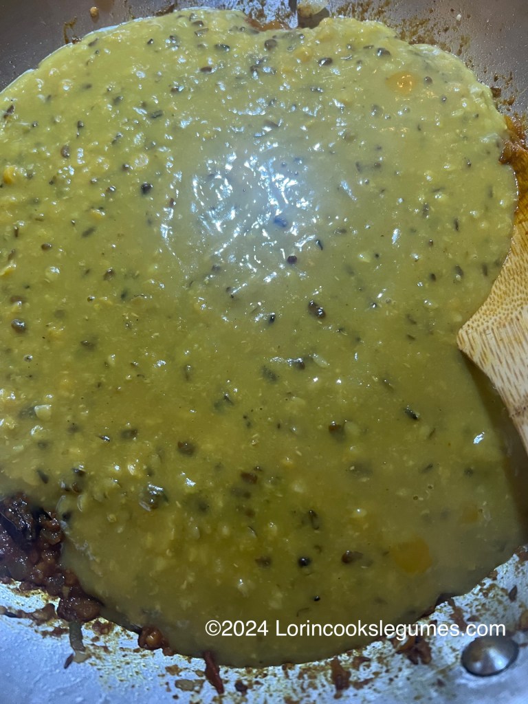 As you can see in the photo, this dal is generally made relatively thick and meant to be scooped up with roti. I probably could have stood to make mine a little thinner even. It will become pretty solid once it is cold, so you’ll probably need to add water if you are reheating leftovers. Again, adjust to your preference, make it nice and thick for scooping, or thinner to serve over rice.