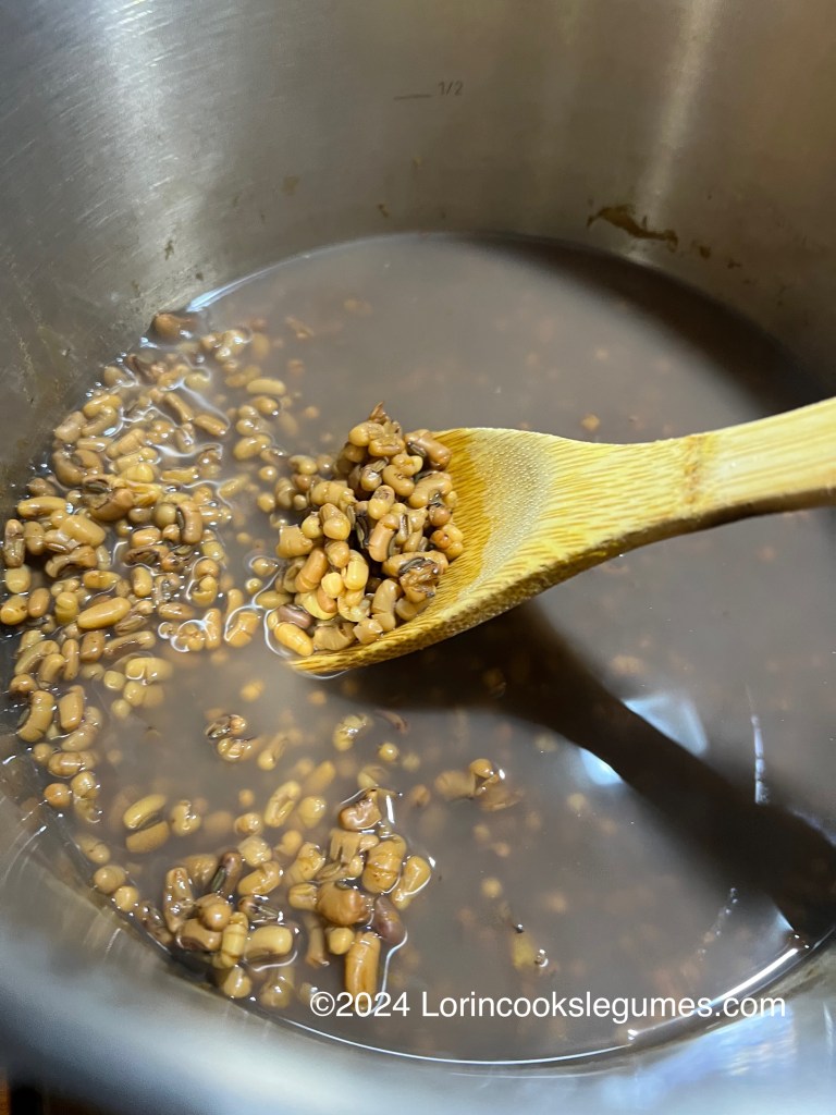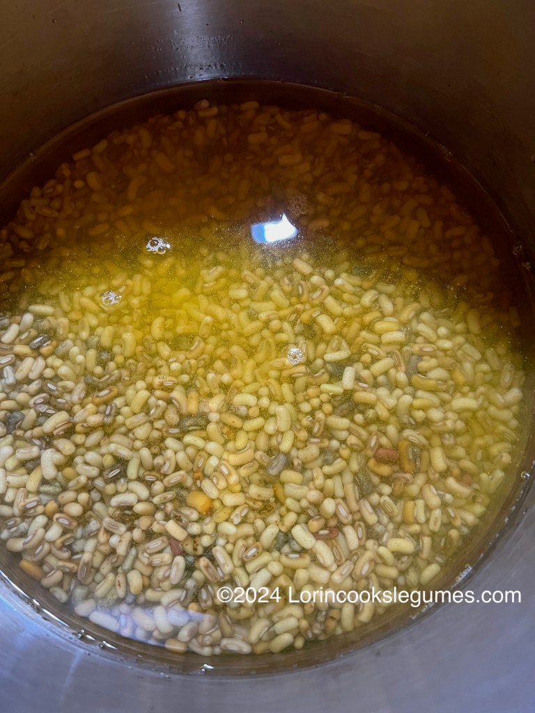 Pick over the beans and remove any bad beans or foreign objects. Rinse well, drain, and cover with cool water. Leave to soak overnight.
