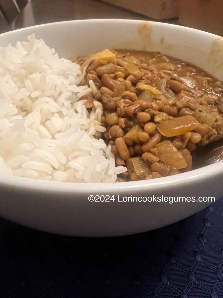 Outside of Himachal Pradesh, navrangi dal seems to just mean mixed dal. Over half the recipes that show up when you Google that term call for some mixture of different types of common dal and beans, similar to panchratna dal, but with more types of dal. By my usual rules for creating recipes I should have made another mixed dal recipe, but since Wikipedia was referring to the specific type of bean, and I did have a few recipes for it to work from, I chose to do the rice beans again.