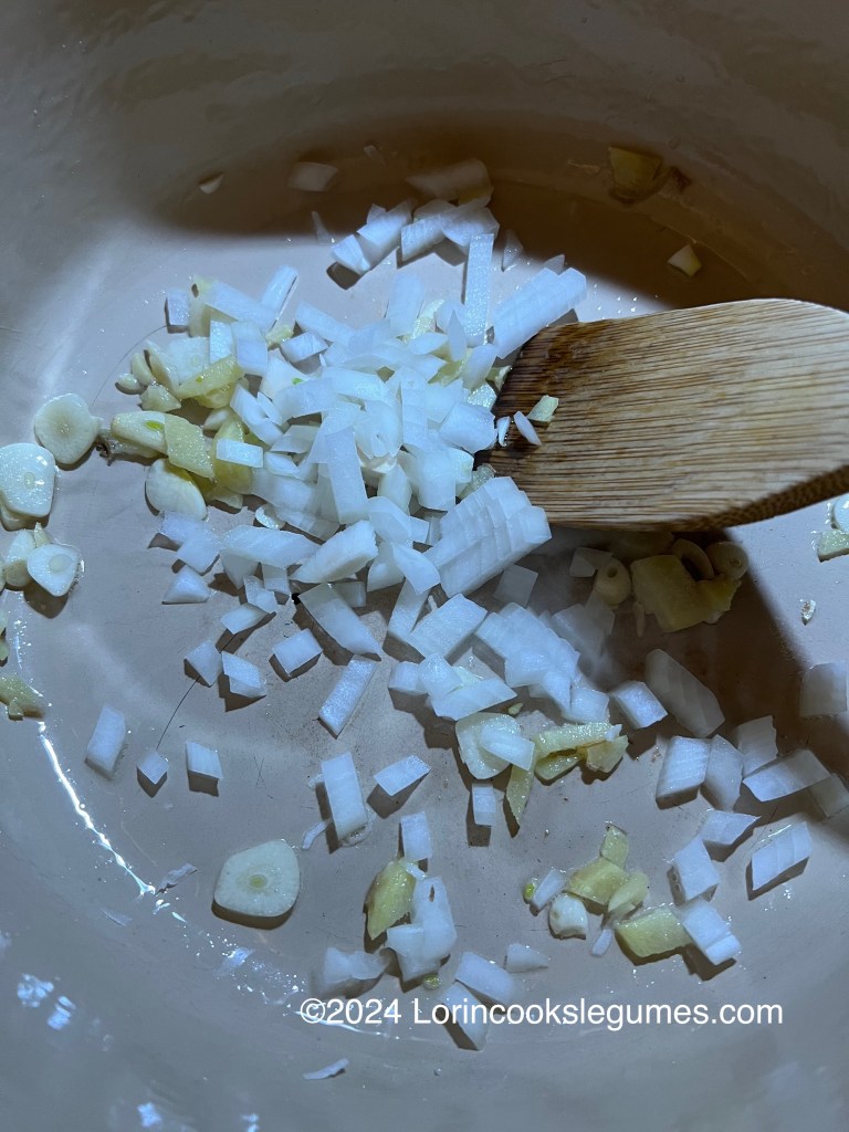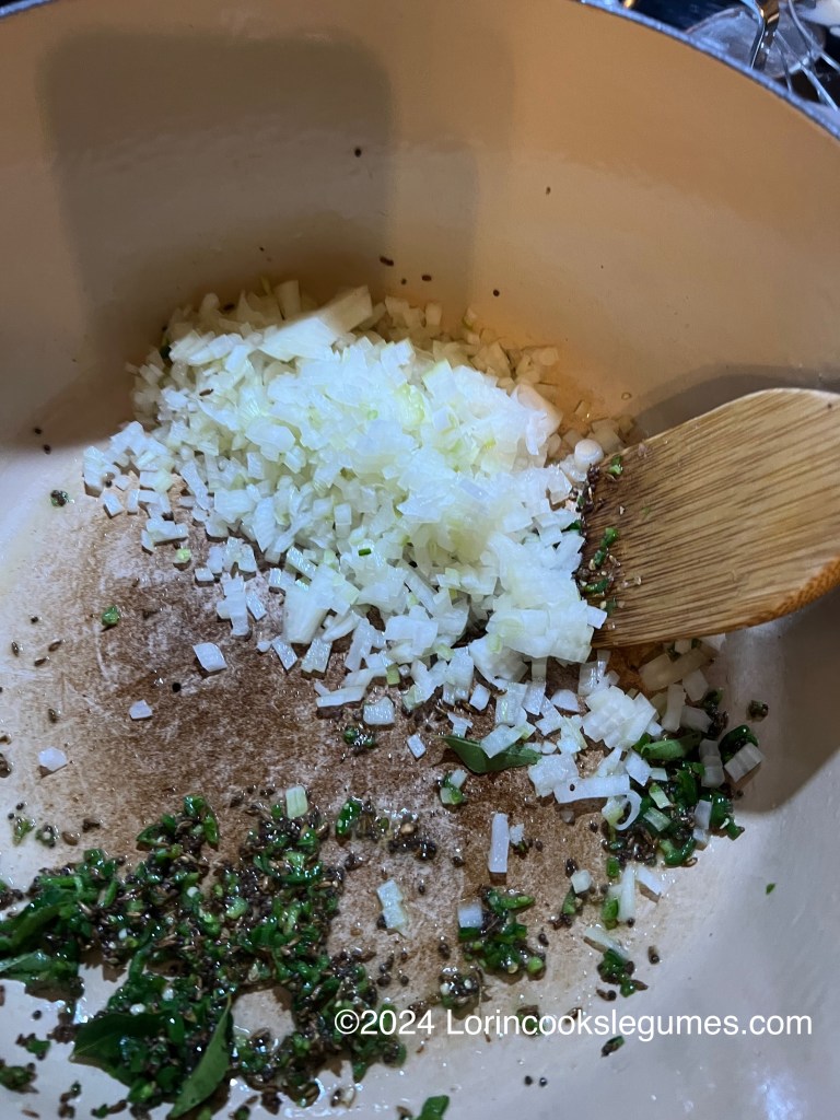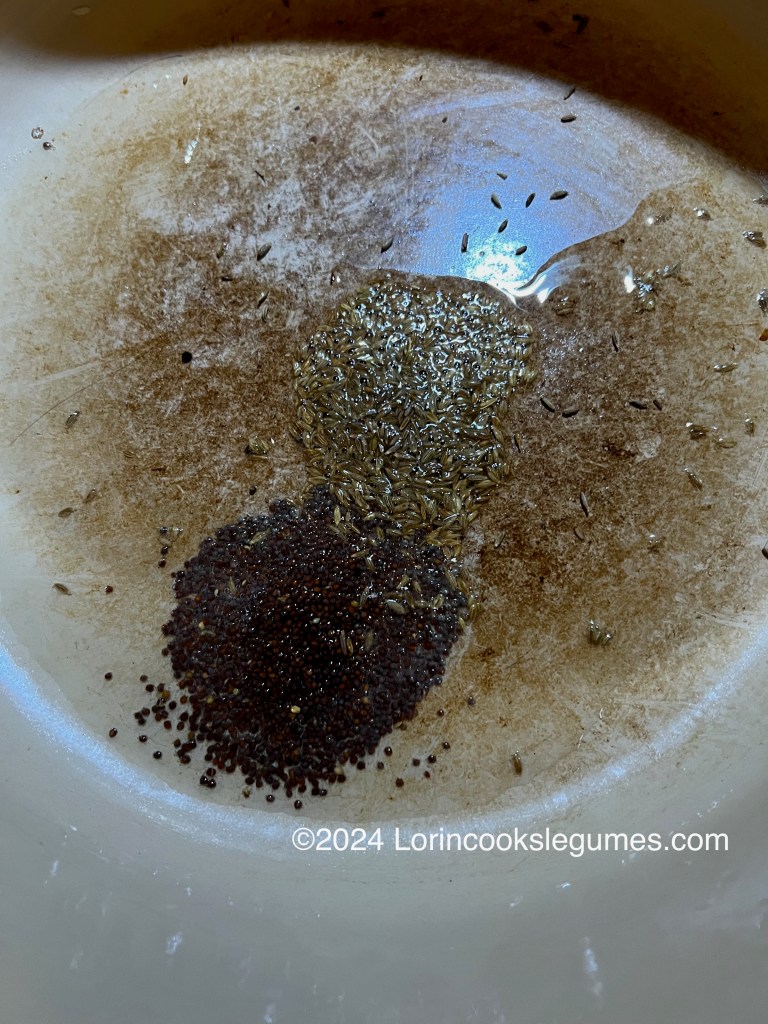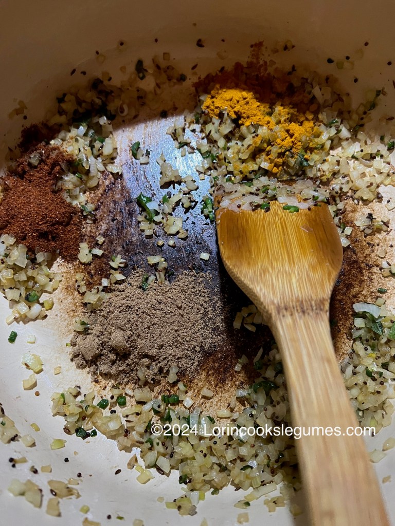 My recipe says to cook the usal in the same pot you fried the coconut in. I did wipe it out first with a paper towel, because I used fairly finely grated coconut and I didn’t want any bits left to burn when I was frying the spices and onion in the next step. If you use larger coconut flakes that might be unnecessary if you make sure all the bits of coconut are out of the pan.