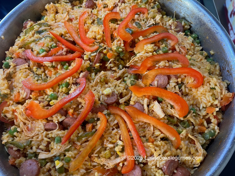 Wherever arroz a la Valenciana is made, it seems to be a popular dish for celebrations- Christmas, birthday parties, any time you have a large group of people gathering. As such, my recipe is quite a bit larger than my typical recipes, easily making 8-10 servings.